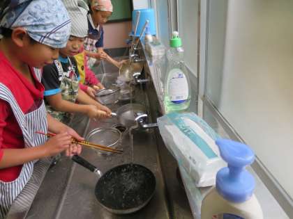盛り付けている間に,洗い物です。