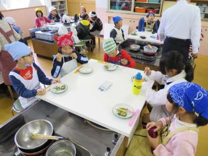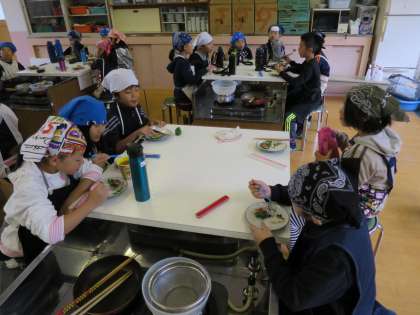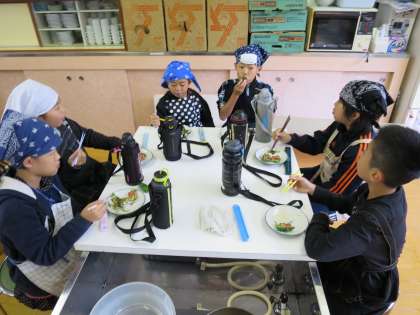 すべての班の準備ができ,食べ始めました。