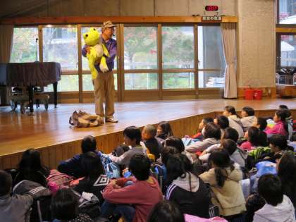 退所式の所員の方のお話の中で,山の家のキャラクターも登場しました。