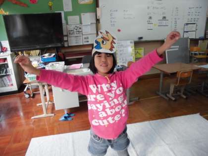 2人とも早速お面を被って,役になりきっています。