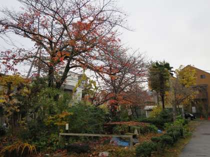 梅津北小学校には,多くの植物や樹木があります。今年も気温が下がるとともに,木々が色づき始めました。