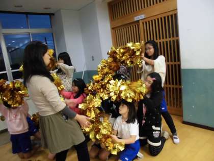 ダンスやスタンツは休み時間の練習も成果もあり,