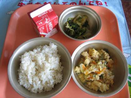 麦ごはん・牛乳・あげたま煮・はくさいとほうれん草のごま煮