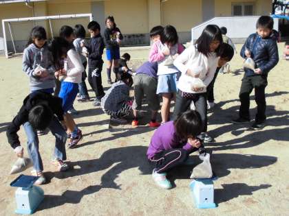 今日の算数は運動場に出て