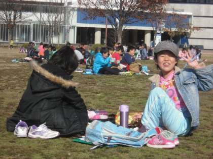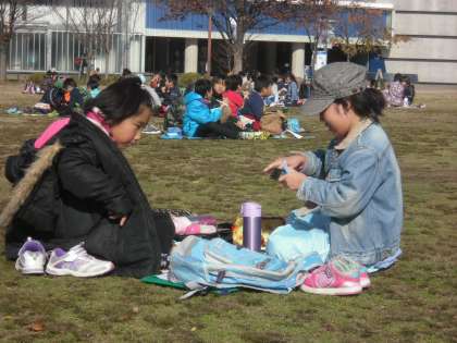 梅小路公園でお弁当を食べました。気温は低かったのですが好天に恵まれ陽の光が暖かかったです。お弁当作り、ありがとうございました。
