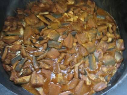 本日の献立には干したずいきを使っています。食物繊維が多いので、おなかの調子を整える働きがあります。
