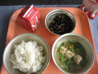 胚芽米ごはん・牛乳・水菜とつみれのはりはり鍋・ひじき豆