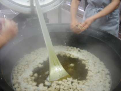 「水菜とつみれのはりはり鍋」の「つみれ」はまぐろフレーク・鶏ひき肉・細ねぎ・しょうがと調味料を混ぜ合わせ、給食室で一つ一つつみれだんごをつくりました。手作りのつみれだんごのやわらかな食感と「水菜」のシャキシャキした歯ごたえが味わえる献立でした。