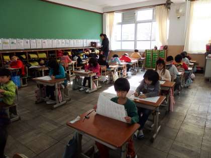 梅北検定中の低学年のようすです。終わった後も見直しをして,間違いがないか確認をしています。