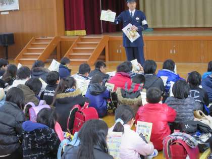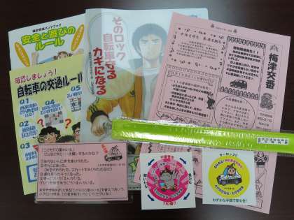 その後,安心安全に関わる資料やグッズをいただき,お話を聞きました。