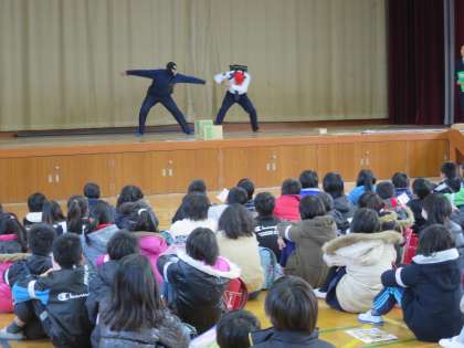 警察の方の寸劇で,どんなときに「こども110番のいえ」に助けを求めたらよいのか教えていただきました。