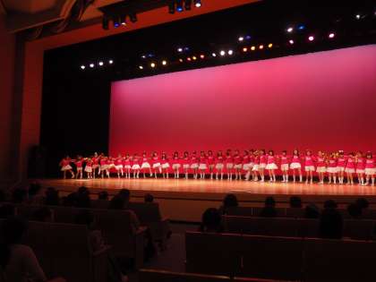 お披露目会では課題の残ったラインダンスとポン文字も,練習の甲斐あって綺麗に決まりました。曲の最後まで元気いっぱいで可愛く踊ることができました。