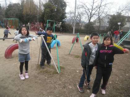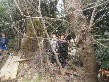 今日も基地ごっこ。犬を連れてきたところだそうです。