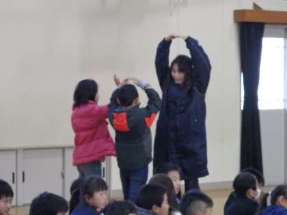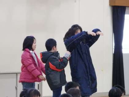 昨日,2年生の梅北タイムの発表がありました。発表の中で「みなさんも一緒にかけ算体操をしよう!」と声掛けがあり,IさんとNさんも一緒に体操にチャレンジしました。体を動かしながら,楽しくかけ算の勉強ができました。