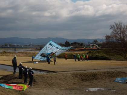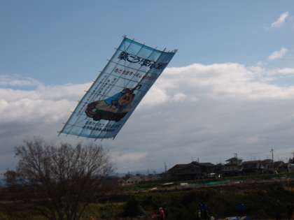 最後に北梅津防犯推進委員会の方が作成した 大きな 大きな 大きな凧があがりました。すごいです。