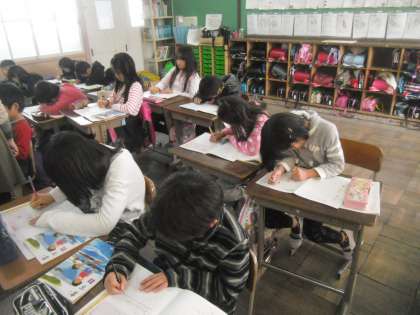 1組で硬筆練習をしました。しーんと静まりかえった中で鉛筆の動く音だけが聞こえていました。集中して書いていた証拠です。