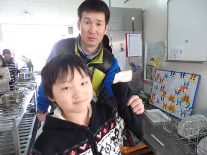 今日のプレゼントは折り紙で作られた妖怪ウォッチです。給食調理員さんたちが,1つ1つ心を込めて作られました。「すごい!」と,子どもたちも大喜びです。