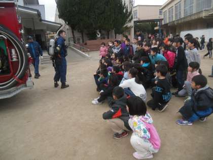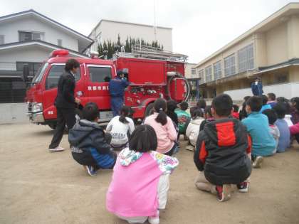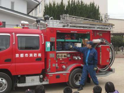 消防車のつくりを見せてもらいました。救助ができるような様々なしくみがありました。