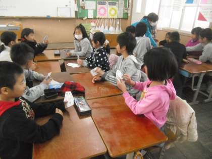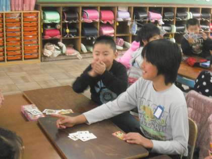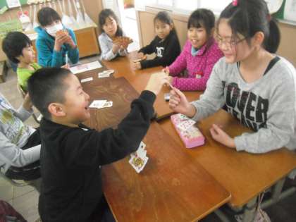 今日のロング昼休みは、たてわりグループでのなかよし遊びでした。教室でトランプ遊びをしました。
