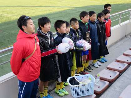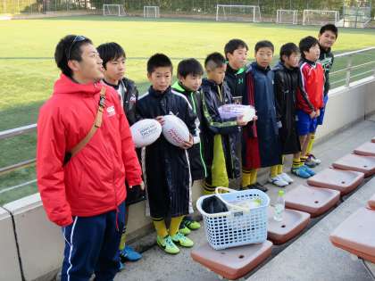 記念撮影の後,スタンドで応援のお礼を言いました。