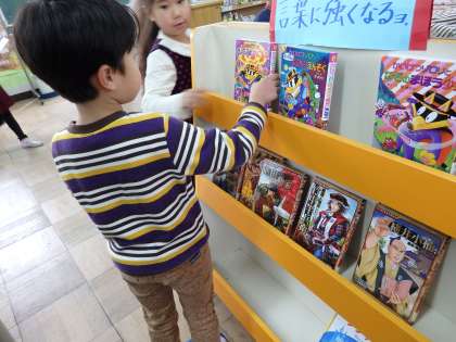 特に人気だった『ゾロリシリーズ』や『歴史漫画シリーズ』『世界の童話シリーズ』などは,早速本棚に並べられ,子どもたちが本棚の前に集まっていました。また,ぜひ図書館に足を運んでください。