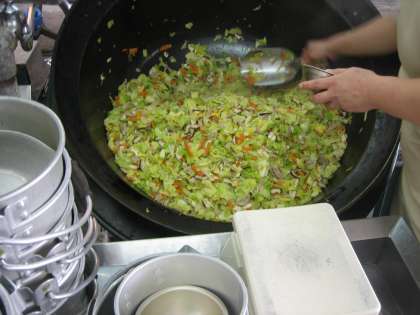 「きのこのソテー」にはエリンギと生しいたけが入りました。キャベツのシャキシャキ感ときのこの食感が楽しめる献立でした。