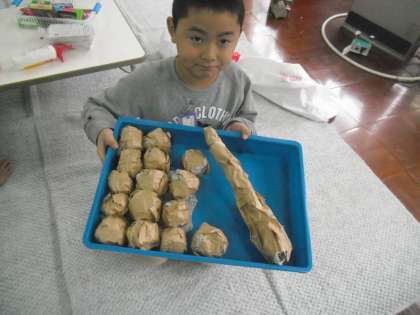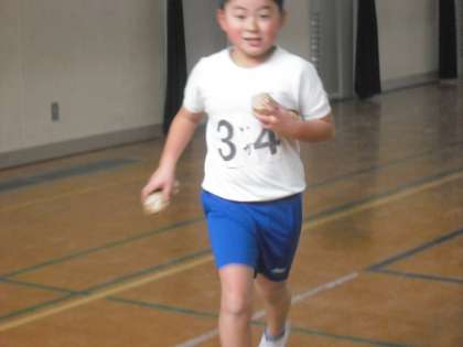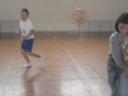 新聞紙で豆を作って体育の時間に「豆まきかけあし」をしました。先生は、Nさんが作ってくれた鬼のお面をかぶって逃げ回りました。