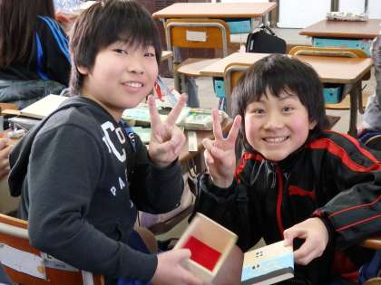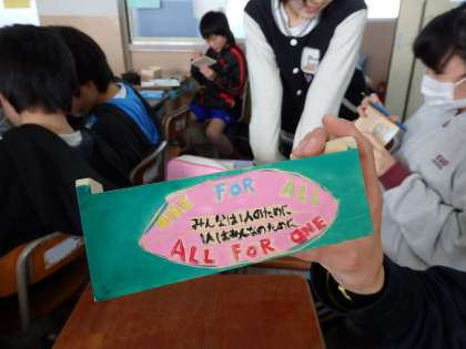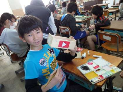 このオルゴールは小学校卒業の,思い出の作品にもなります。タグラグビーやチアなど,部活動の模様で作っている子や,自分の好きなものを描いている子など,それぞれの個性がよく出ています。