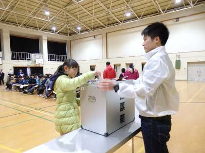 いよいよ投票の瞬間です!学校の方針を決める一票です。