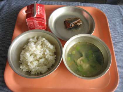 本日の献立の「ふわふわだんご汁」は新献立です。