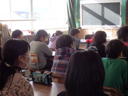 6年生の教室でも,たくさんの絵本を用意して読んでくださいました。