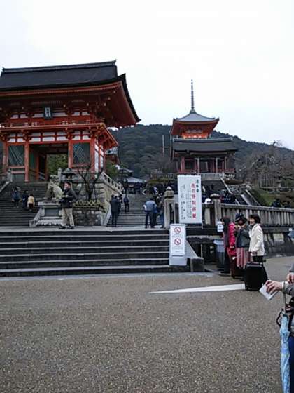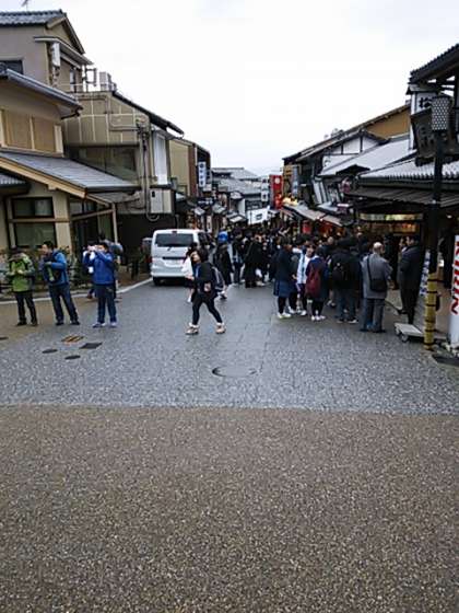 現在、午前9時過ぎ。もうたくさんの観光の方で賑わっています。子どもたちは、行きのバスではマナーを守り、静かに行動していました。(公共のバスで、写真を撮るのは控えました。)無事、清水寺まで来るのを待ちます。