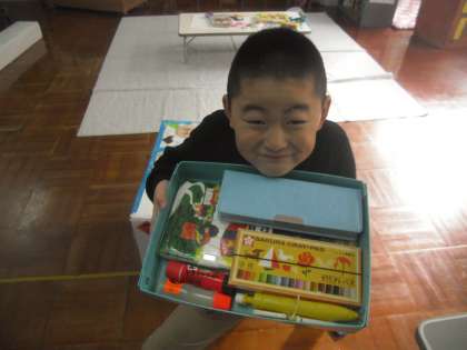 そしてその勢いで机の中のお道具箱の中も片づけていました。先生が「片づけてください。」と言わなくても自分からできていましたね。