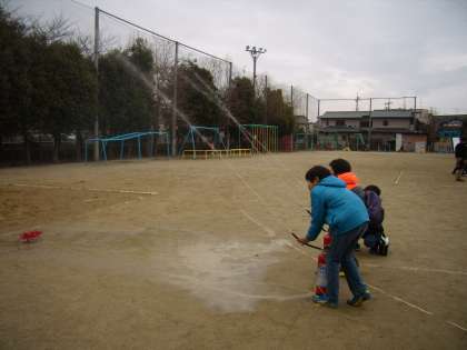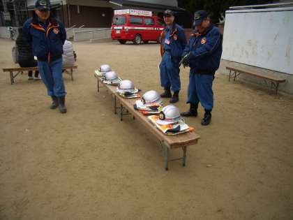 子ども用の消防服を着せてもらうコーナーや消化器の体験コーナーもありました。