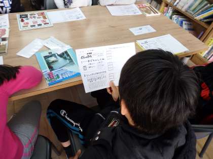 本探しゲームの後は,どんなふうに探したのか質問タイムがありました。先生からは「見つけたい本があるときは,分類表と番号を見るとすぐ見つかる」というお話をされました。
