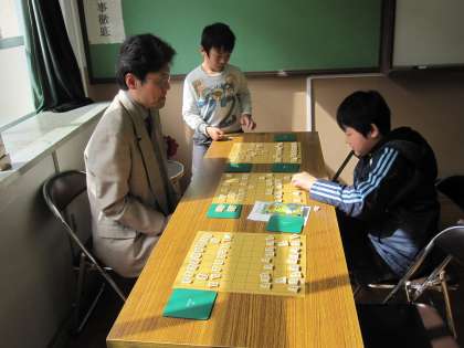プロ棋士 野間先生とも対戦しながら、子どもたちは級別で対戦しました。