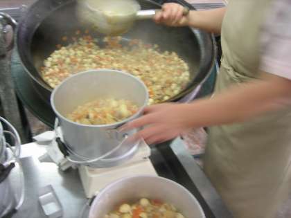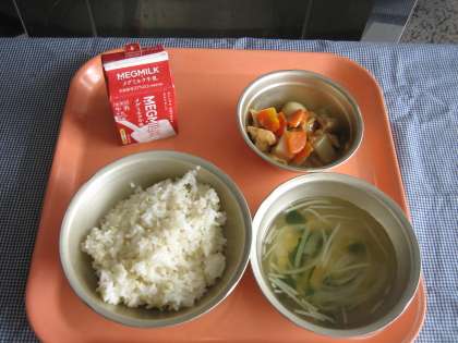 「プリプリ中華いため」は色々な食材のプリプリとした歯ごたえを楽しめる、子ども達に人気の献立です。しょうがやにんにくを入れてトウバンジャンをきかせ、ごはんに良く合う味付けにしています。