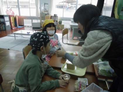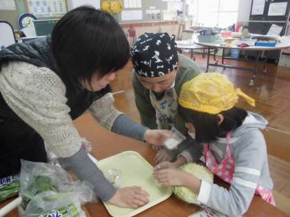 出汁についても勉強しました。栄養の先生が持ってきてくださった,カツオや昆布などの匂いを嗅いだり,いろいろなお味噌の違いを楽しみました。調理の手順を確認したら,いよいよ次は料理の準備です。