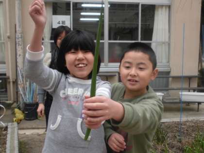 選んだ2つの素材に付け加えるのは,畑で作っている自家製のネギです。材料を洗う前に畑に取りに行きました。採りたて新鮮なネギ。味わうのが楽しみです。