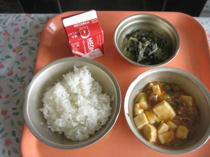 ごはん・牛乳・豆腐の四川風・ほうれん草ともやしのいためナムル