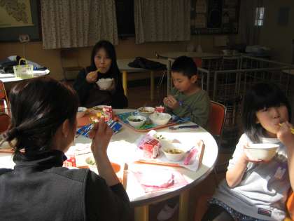 スプーンやおはしの使い方もきちんとできていました。いつもしっかりと食べる事ができている四組さんでした。