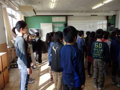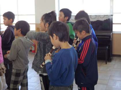 先週の金曜日3時間目に行われた6年生を送る会で,3年生は『花は咲く』を歌いました。写真は音楽室での練習のようすです。今回は歌だけではなく,途中でリコーダーのメロディーや群読,手話をはさむなど,少しレベルの高い出し物に挑戦しました。