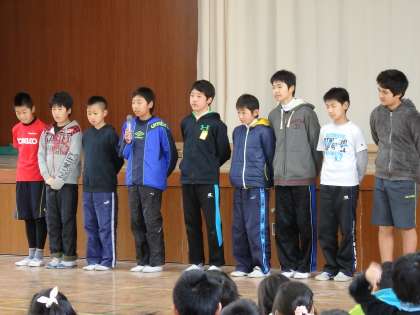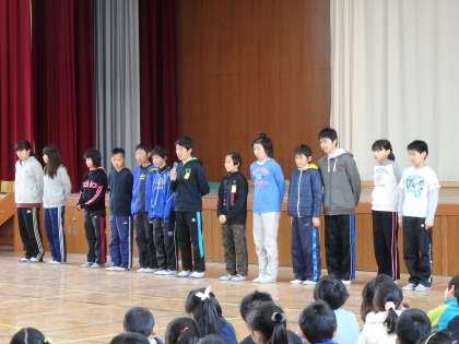 先週の水曜日に行われた,なかよし集会となかよし遊びのようすをお伝えします。4日のなかよし集会では,大文字駅伝に出たメンバーの結果報告と,タグラグビー部の全国出場メンバーによる意気込みの発表がありました。