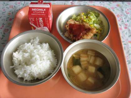 ごはん・牛乳・トンカツ・ソテー・みそ汁