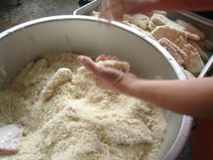 今日は6年生の卒業をお祝いして、一枚ずつ心を込めて「トンカツ」を手作りしました。