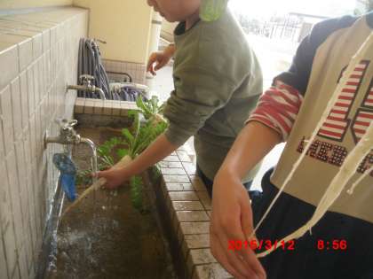 先週のことですが…畑の大根を収穫しました。一昨年のような立派な大きさにはなりませんでしたが、4組で食すには十分でした。平天やゆで卵と共に炊いておでんにしました。