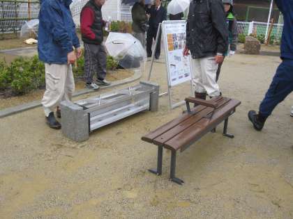 校区に初めての公園が、地域の皆様のお陰でできました。3月14日にお披露目され、16日から開放されています。公園内のベンチは、災害時にはかまどとして使えるものだそうです。