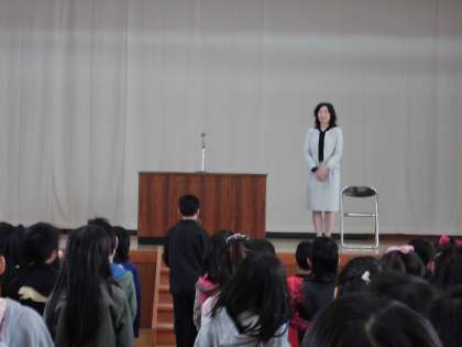 お別れの言葉と花束を渡した後は,全員で花道をつくり教頭先生をお見送りしました。教頭先生は,この後すぐに次の学校へ向かわれるので,これが最後のお別れとなります。花道で見送った後は,すぐ次の教頭先生の着任式がありました。新しい教頭先生にみんな興味津々でした。新学期がとても楽しみです。