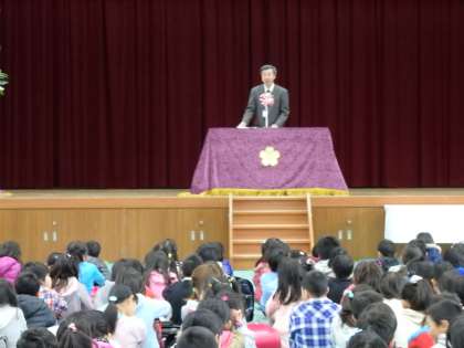 始業式では校長先生が,今年度も『あいさつ・そうじ・スリッパ・廊下は歩く』を,みんなで徹底していこうとお話されました。新年度になった今,あらたな気持ちで学校のいろいろなルールに取り組んでいきましょう!