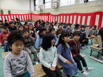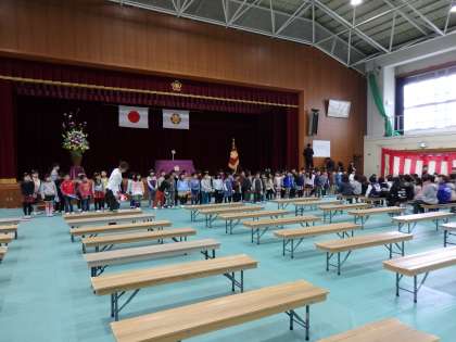 いよいよ本番当日です。児童代表として1年生をお迎えする新2年生は,背筋をシャンと伸ばしてやる気十分です。始業式・担任発表の後,旧クラス体制で入学式のリハーサルをおこないました。